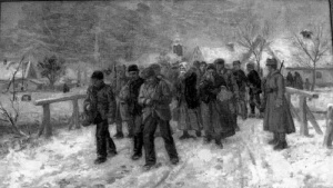 [[File:ART_0721_2.jpg|thumb|right|Ölgemälde von Stefan Jäger: Die Russlandverschleppung im Januar 1945 - [[WK:0132]]]] | |||