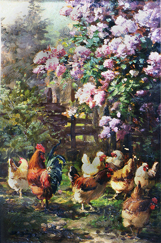 | − | + | {{DISPLAYTITLE:Hühnerhof – Hühner unterm Fliederstrauch}} | |