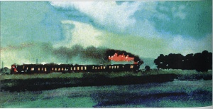 Stefan Jägers Aquarellstudie Hatzfeld, Nachtzug ist als Bildbeilage zum Beitrag ohne direkten Textbezug mit abweichender Beschriftung (Nachtzug nach Hatzfeld, Aquarell von Stefan Jäger) als Farbreproduktion abgedruckt worden.