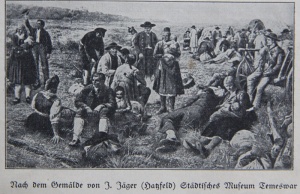 Stefan Jägers Gemälde Die Einwanderung der Deutschen nach Ungarn, Detail, erster Bildabschnitt, ist auf der Buchseite 10 ohne direkten Textbezug mit der Beschriftung (Nach dem Gemälde von J. Jäger (Hatzfeld) Städt. Museum Temeswar) als Schwarz-Weiß-Reproduktion abgedruckt worden.