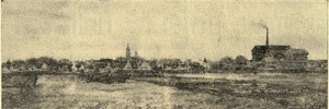 Stefan Jägers Aquarell Hatzfeld - Nordansicht ist auf der Zeitungsseite ohne Textbezug mit der Beschriftung (Ein Aquarell von Stefan Jäger, wie man es selten antrifft: Am Rande der Gemeinde Jimbolia. Reproduktion: Eduard Jankovits) als Schwarz-Weiß-Reproduktion abgedruckt worden.
