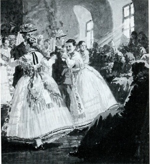 Begenung mit der Godl - WK:0057 - Glückliche Mutter und stolze Godl mit dem Patenkind in einer Darstellung von Stefan Jäger, S. 205