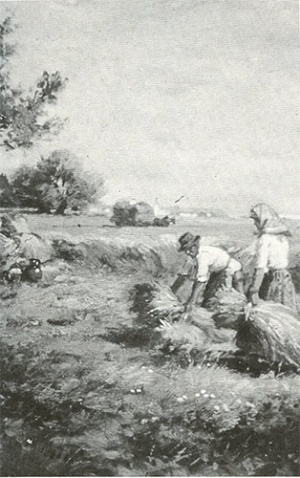Schnitt - WK:0227 - die vorangegangene schwere Erntearbeit hat Stefan Jäger in seinem Gemälde festgehalten, S. 237