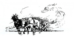 Stefan Jägers Zeichnung Beim Ackern ist auf einer Seite ohne Textbezug ohne Beschriftung als Schwarz-Weiß-Reproduktion abgedruckt worden.