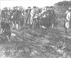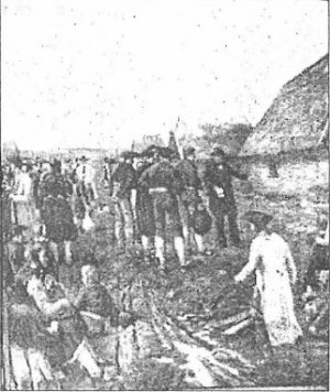 Bei Leopold Csendes (Temesvár) erscheint anlässlich dieser Bildenthüllung die „Kurzgefasste Gelegenheitsbroschüre zur Bildenthüllung in Gyertámos am 15.Mai 1910“, verfasst vom Sekretär des Südungarischen Bauernvereins Stefan Dold, wobei das Bild unter dem Titel „Die Einwanderung und Ansiedlung der Deutschen“ genannt wird. In der „Temesvarer Zeitung“ Nr. 111 vom 18. Mai 1910 wurde diese Bildenthüllung unter den Titel „Festtage in Gyertyámos“ behandelt und in „Einwanderung der Deutschen nach Ungarn“ umgetauft. Dabei ist durchaus bemerkenswert, dass diese Zeitung angesichts einer damals stark ungarischen Öffentlichkeit die Banater deutschen Bauern als „Deutsche“ ansprach, wo die damalige chauvinistisch-magyarische Presse gerne noch abwertend von den „svábok" schrieb (während man für die deutsche städtische Bevölkerung österreichisch-baierischer Mundart das „németek" parat hatte). In solcher Zeit hatte die „Temesvarer Zeitung“ schon am 27. März 1879 von "Banater ‚Schwaben’“ und am 13. Mai 1879 von „südungarischen Schwaben“ geschrieben.