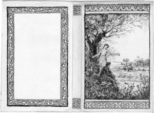 "Landschaftlicher Entwurf mit allegorischen Figuren" Stefan Jägers für dem Einband der "Heidesymphonie" - WK:1889