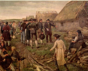 Das sich die Banater Schwaben für ein monumentales Gemälde entschieden, über-rascht zunächst. Im eigenen regionalen Kulturverständnis wie in dem der anderssprachigen Nachbarn gibt es kaum Anhaltspunkte, die auf eine identitätsstiftende künstlerische Monumentalarbeit hinweisen. Der häusliche Bedarf war im Wesentlichen auf die Heiligenbilder im Herrgottswinkel beschränkt und wurde von Fliegenden Händlern versorgt. Mehr an Kunst war weder nötig, noch gewünscht. Die geschichtsprägende Funktion der Historienmalerei allerdings war zumindest der gehobenen Schicht so unbekannt nicht und dürfte diese in ihrer Entscheidung für ein Einwanderungsbild bestärkt haben. Denn es war die legendäre Siedlungsleistung der Ahnen, die als historische Tat im Bewusstsein der Banater Schwaben verankert war, auf die man stolz sein durfte und auf die man hinzuweisen sich nicht scheute.