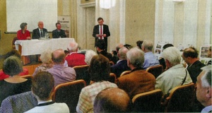 Den Vortragsabend beschloss Dr. Florian Kührer-Wielach, stellvertretender Direktor des Instituts für deutsche Kultur und Geschichte Südosteuropas an der LMU München. Der Historiker stellte Heft 2/2014 der Institutszeitschrift „Spiegelungen" mit dem Themenschwerpunkt „Multikulturelles Banat" vor.