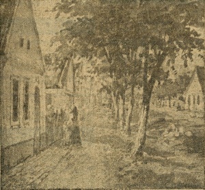 Stefan Jägers Aquarell Strasse in Orzidorf ist als Schwarz-Weiß-Reproduktion unter dem gleichnamigen Bildtitel veröffentlicht worden.