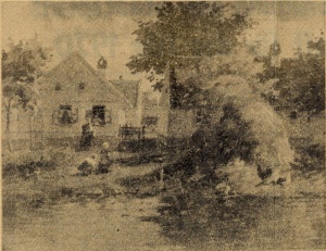 Stefan Jägers Aquarell Dorfrand mit Kaul ist als Schwarz-Weiß-Reproduktion unter dem Bildtitel "An der Kaul" veröffentlicht worden.