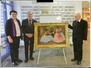 Bei seinem Besuch im Nischbach-Haus überreichte Bischof Martin Roos (rechts) als Gastgeschenk ein Gemälde von Stefan Jäger; links im Bild Heimleiterin Elisabeth Klein und der Ehrenvorsitzende des Hilfswerks der Banater Schwaben, Peter Krier. Einsender: Peter Krier