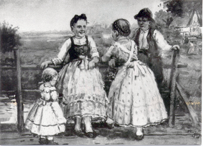 Vier Kinder auf der Brücke